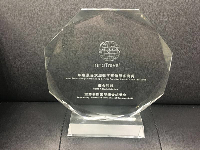 演讲环节完毕后,Inno Travel 2016颁奖盛典正式拉开帷幕,璧合科技作为参赛公司之一,荣获“年度最受欢迎数字营销服务商”奖项。