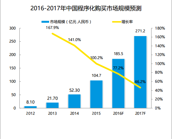 (图为,2016-2017 年中国程序化购买广告市场规模预测)
